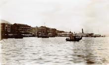 The new Harbour Office was formally opened by His Excellency the Governor on the 16th July. Erected on The Harbour front, about 370 yards to the Eastward of the site of the old office, which had been relegated to an inland position by the carrying out of the Praya reclamation Scheme, it is rendered conspicuous by being flanked on either side by buildings of the ordinary Chinese tenement class, from which it differs greatly in character.